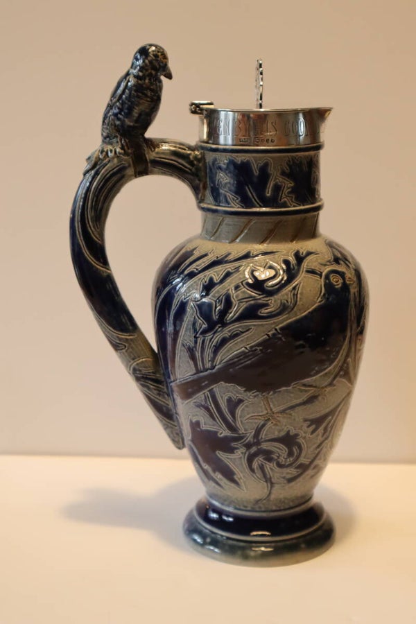 Mooie karaf in steengoed gemerkt onderaan Fulham pottery London .